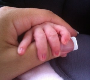 I took this picture when Amanda was only two days old. We were on our way home from the hospital and I was sitting nervously beside her. I wanted to capture the moment when our two hands were entwined together, knowing that this was a picture that was literally worth a thousand words.